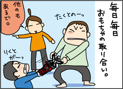 ママは大変だけど、兄弟で取り合いするのも子供にとっては良い経験ですよね。