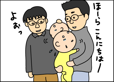 旦那に抱かれて旦那のお兄さんにご挨拶。