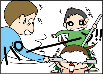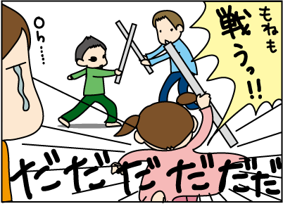 拓人と陸人が戦ってると、自分も落ちてる新聞棒を