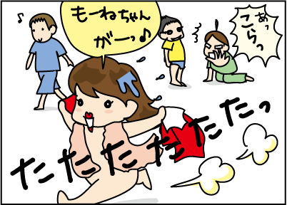 着替えることもなく、遊ぶ百音。