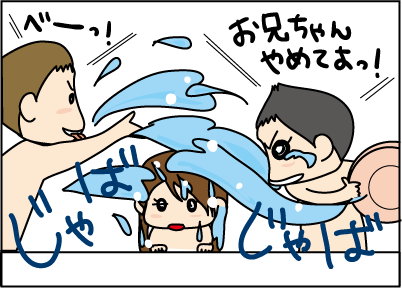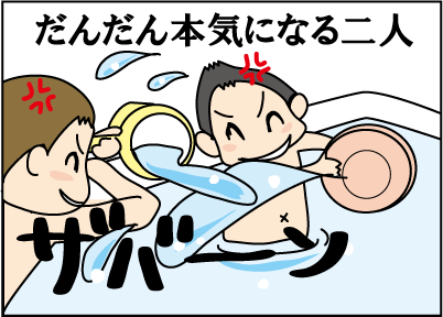 お湯のかけ合いをしている。