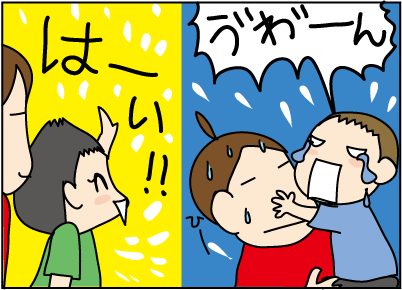 大泣き→大喜び→逃亡でした(ノ_・。)