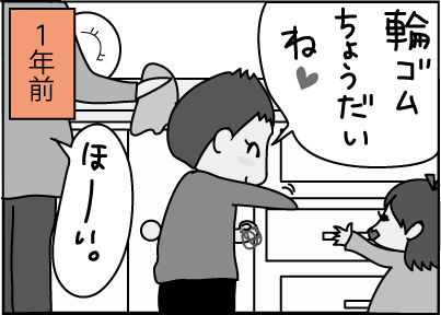 「輪ゴムちょうだい」と、