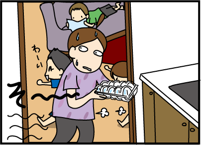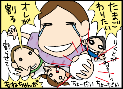 一歳の息子の勢いよく割るのもビクビク、3歳娘の優しすぎていつ割れるのかわからないのもドキドキ。