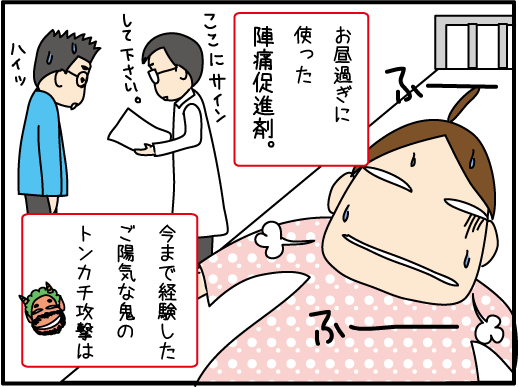 陣痛促進剤は、痛いもんですねーー(ノ_・。)