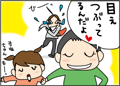 あららw実は私も妹がいるんですが小さい頃同じように目をつぶって手を繋いで2人で悪ふざけして歩いたものです( ´ ▽ ` )ノ