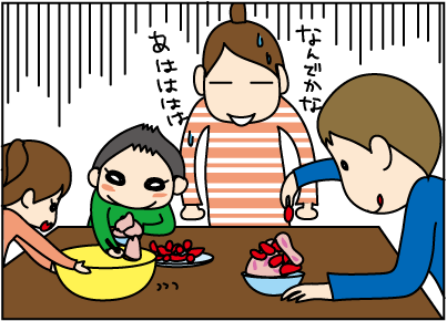 「拓人!イチゴどんだけ山盛りにするねん!」