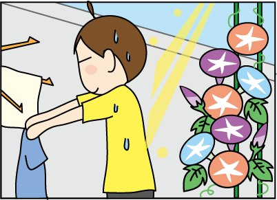 どんなに暑い日も、ぽんぽんと咲く朝顔。
