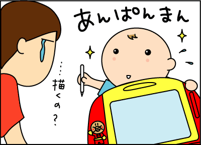 うちの2歳11ヶ月の娘もかなりのアンパンマン好きです。“アンパンマン書いて攻撃”辛いですよね。うちの場合はアンパンマンを書いたら次々に違うキャラを要求されます。おかげで主要メンバー全て書けるようになりました。