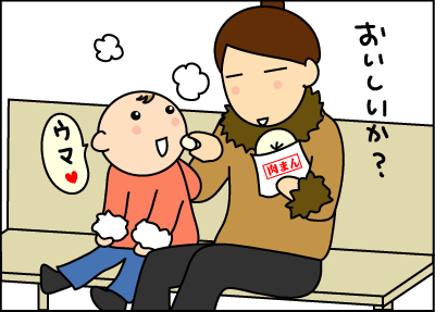 息子もこの日が初肉まんでした♪