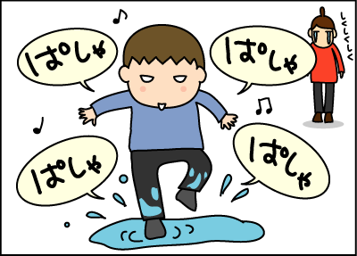 「水たまり踏んじゃったな。あとで靴乾かそうな。」