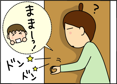 痛いというより、「ままー」と呼んでるのになかなか私が出てこない事で