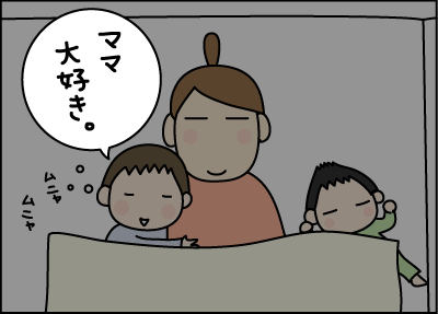 鼻ほじっていても、眠りに入る前の「ママ大好き」を忘れない拓人くんかわいいですよね。