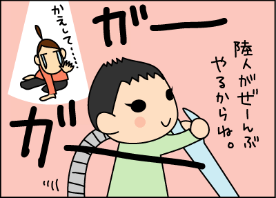 「わーーありがとう!!次はママがするな♪」といいつつ、掃除機を