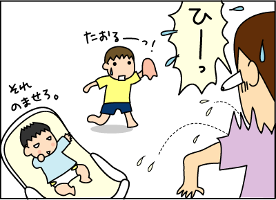 とりあえず長男にアンパンマンを見せて、その間に授乳。