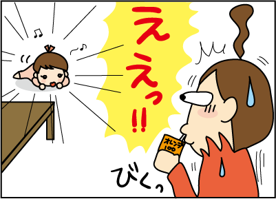 百音をカーペットの上に置いて、台所で
