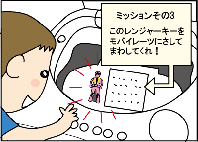 大喜びでモバイレーツにレンジャーキーを刺して、