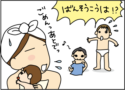 私も体を拭く暇がなく、びっちゃびちゃ。