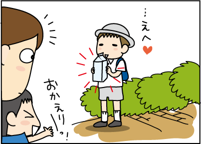 その手には牛乳パック。
