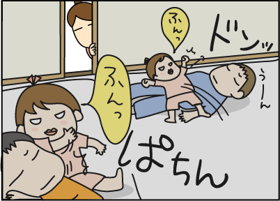 遊んでいます。上の二人が寝た後に、昼間の分をやり返して