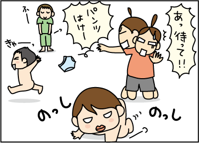 うちは下の娘がお風呂から出て、裸でリビングへいき、おしっこしちゃうことが何度もあって…。「おにいちゃんオムツとって来てはかせてあげて」とお願いしています。ちゃんとはかせることは難しみたいですが、雑にでもはいてくれているだけでおしっこ被害はなくなりました。