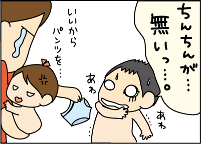 ちんちんがないことに気がついた陸人くんを想像すると笑ってしまいました。いつもちょっとしたことを見つけられるけえこさんはステキですね。