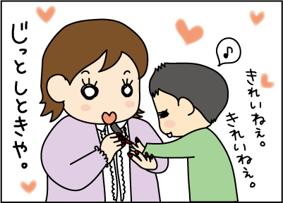 私が化粧水と乳液をつけていると「僕もパチパチするの~」と言って真似をしていました。