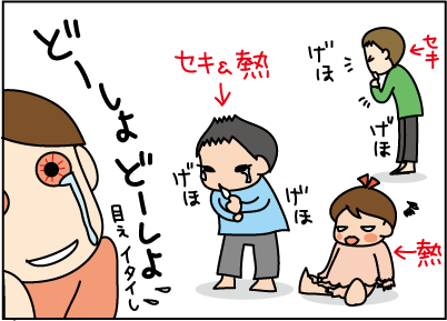 うちも百音の鼻水と陸人の咳がまだ治りません。。