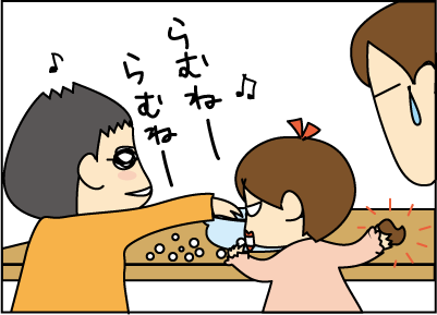 大事なラムネを、こっそり横から食べる。