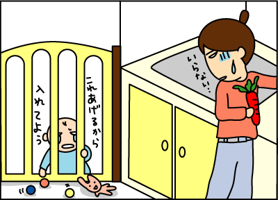 人参を切ろうと振り向いた瞬間