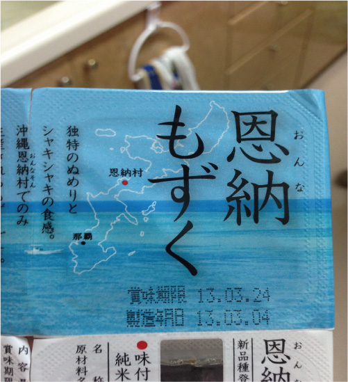 手に持ってるのは、もずく4パック。