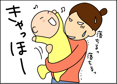 方法は抱いてただ弾むだけ!ただし、横でも縦でも首をしっかりホールドしてあげてね。