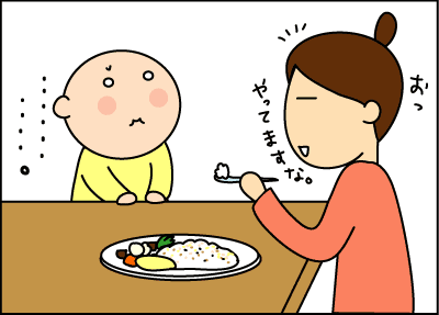 食事も途中にオムツを外して