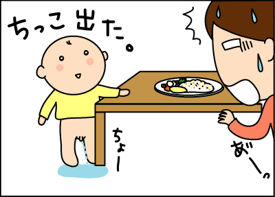 息子さんは、おしっこもうんちもしてスッキリごきげんだったでしょうね。でもママは大変でしたね。朝からお疲れさまでした。