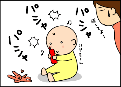 そんな時は古い携帯を渡すとそれ遊んでますが、そのうちイカサマ戦法も効かなくなるでしょうね。