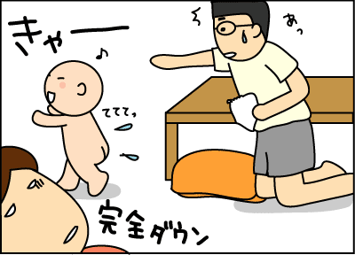 自分も濡れてるし、子供は先に拭かないといけないし・・。