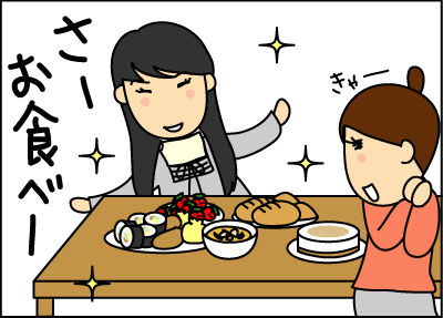 お友達はまさに救世主!私のところにも救世主、来てほしいなあ。・・・もちろんおいしいものいっぱい持って♪
