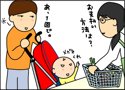 子供が知らないうちにお菓子を手にして、レジの前をササ~ッ…。