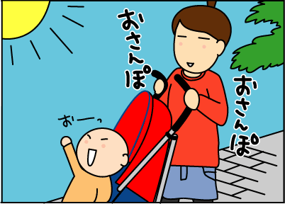ベビカー嫌がって自分で歩きたがる。成長、成長。