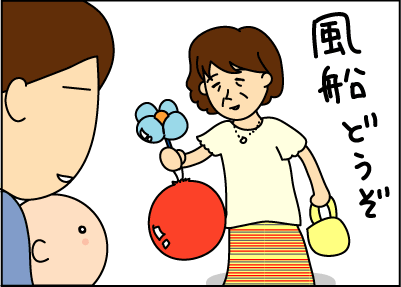 抱っこしながら風船を持ってると、視界が邪魔されて