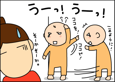 いかにもプレゼンで新商品を説明する営業マンのように必死で説明してくれてるんですね♪そのくらいの年になると自分の意思もしっかりしてくるけど、行動はまだまだ子供なんですね(汗)ぶつけて痛いのわかっててもやめないものですよね。