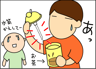 我が家も一度、パパがストローの先を付けないであげてしまい、子供はチューと吸っては叫び、もう一回吸って、テーブルにマグをガンガン打ち付けて怒っていました。