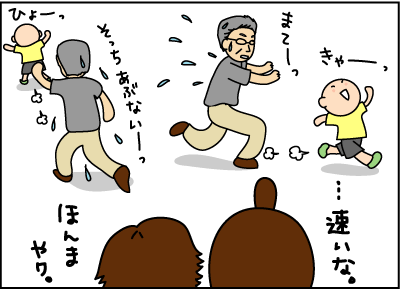 孫のためなら・・・で、パワー全開ですね。ほんと、孫っていうのは、ものすごくかわいいらしいですよね。(まだ私にはその心境がわかりませんが)うちの父も、娘が生まれたら、「この人、こんなに子供好きだったんかい!」と驚くほど、なにかにつけて、娘にかまいたがります。孫パワー、おそるべし、です。