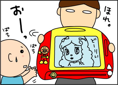 母はそんな時間から付き合う気力がないのでアンパンマンは見たことないはずなのにケエコさんの書いたイラストを指さしてアンパンマンと息子が言ってます。