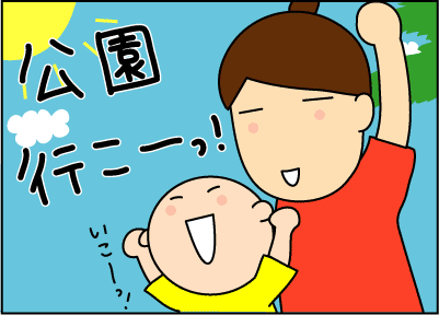 公園、近いんですね。羨ましいなあ。うちは、20分くらい歩かないと公園がないんです。まだ4、5歩しか歩けないから、外遊びはまだしないんですけど(ベビーカーでの散歩はしますが)、そのうち、いっぱい歩くようになったら、公園が近いほうが絶対いいですよね。