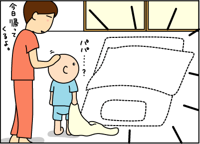 ちなみに、うちも、「今日の夜かえって来るでー」って言ったら納得するみたいで、後はあんまり気にしてないみたい(笑)