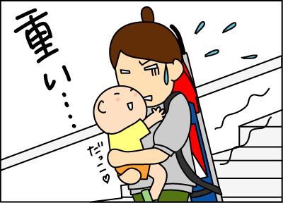 私の息子は、今9ヶ月でもう9キロぐらいあるのでベビーカーごと階段を下りたり上ったりする事があるんですけど、火事場のバカ力で何とかって感じです。
