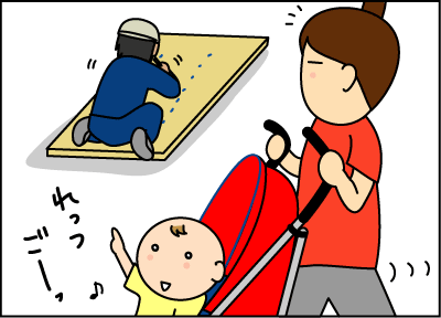 公園で遊んでまた工事中の道を通った。