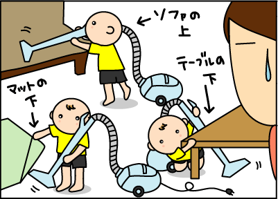 うちも床を思い切り掃除(?)した後、布団を掃除しようとするので