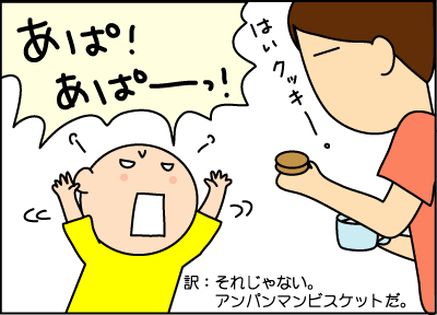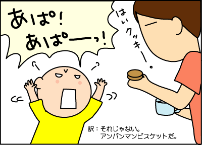 しばらくオヤツはアンパンマンビスケットにしてあげよう。